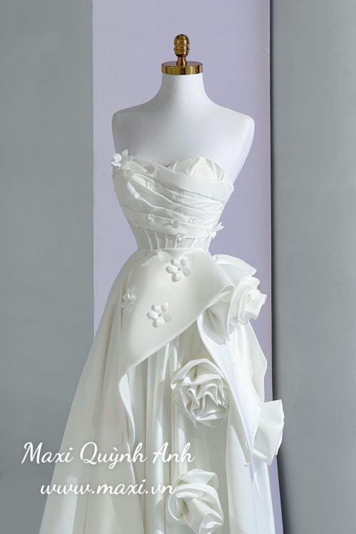 Váy Cưới Cúp Ngực Kết Hoa Cao Cấp