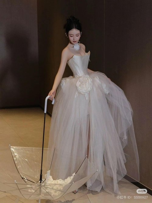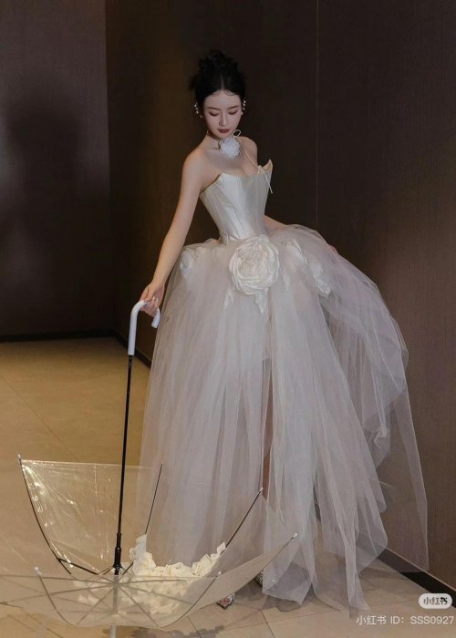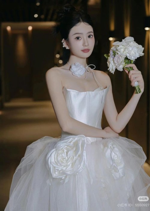 Váy Cưới Cúp Tùng Đính Hoa Hồng Sang Trọng