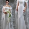 Kiểu dáng váy có độ dài trên gối (mini dress), rất thích hợp cho những bữa tiệc cưới ngoài trời, tiệc pre-wedding hoặc buổi chụp hình. Váy có 2 cách mặc đa dạng sự lựa chọn cho dâu. Thiết kế trễ vai (off-shoulder) với phần bèo nhún ngang vai, tạo vẻ duyên dáng và thanh lịch. Thiết kế cúp ngực (strapless), khoe trọn bờ vai và xương quai xanh gợi cảm.