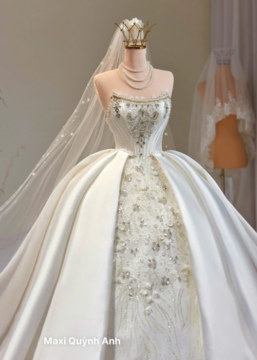 Đây không chỉ là một chiếc váy cưới, mà còn là biểu tượng của tình yêu vĩnh cửu và giấc mơ hoàng gia – giúp nàng dâu tỏa sáng trọn vẹn trong ngày hạnh phúc nhất của đời mình.