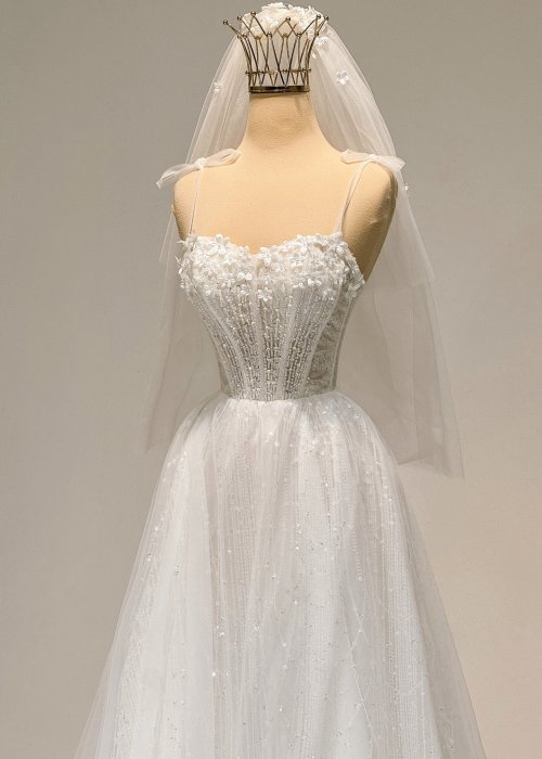 Váy Cưới Kim Sa 2 Dây Cao Cấp