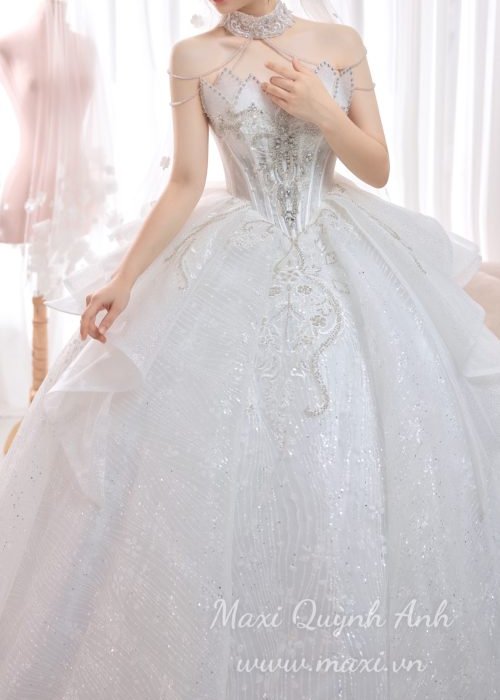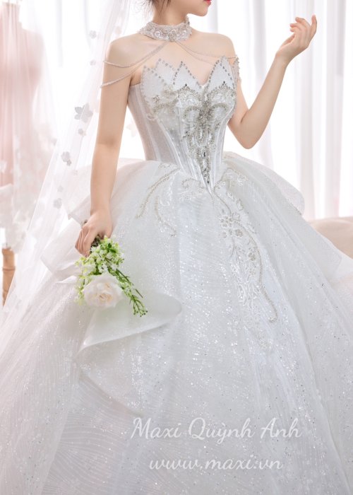 Váy Cưới Kim Sa Cup Ngực Cánh Hoa Cao Cấp