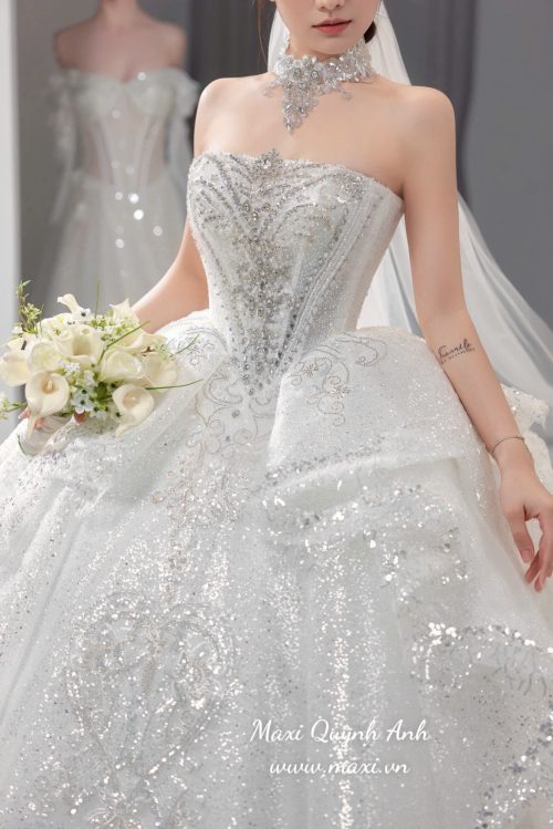 Váy Cưới Kim Sa Cúp Ngực Cao Cấp