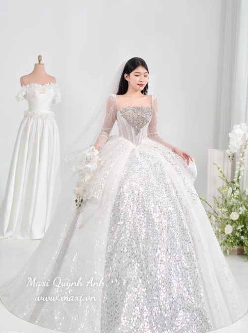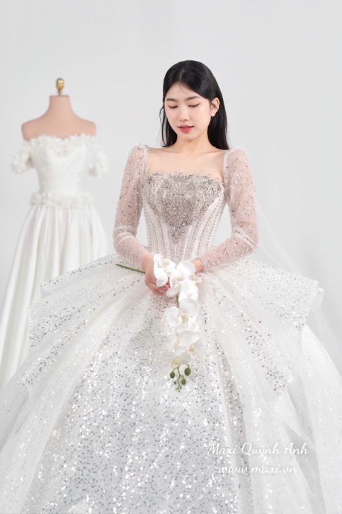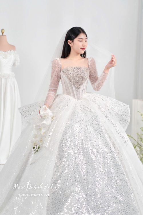 Váy Cưới Kim Sa Đính Đá Cao Cấp