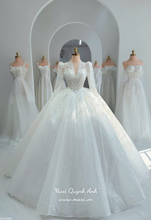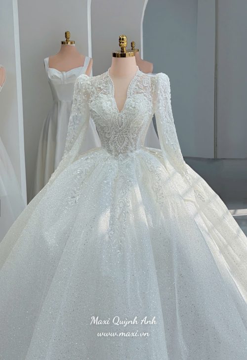 Váy Cưới Kim Sa Ren Tay Dài Cao Cấp