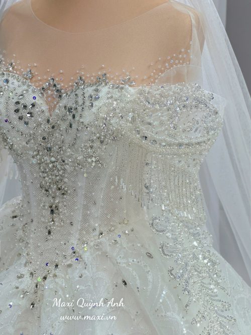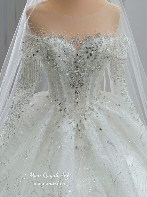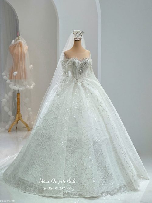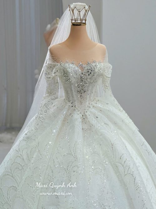 Váy Cưới Kim Sa Tay Dài Phong Cách Hoàng Gia