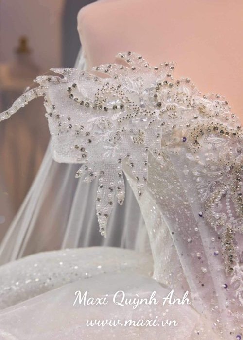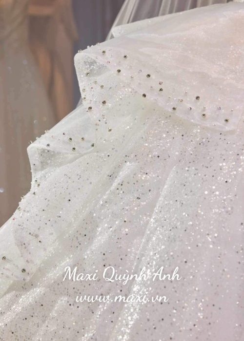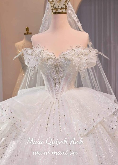 Váy Cưới Kim Sa Trễ Vai Bèo Tùng Cao Cấp
