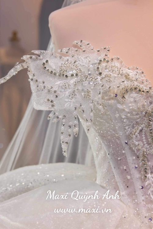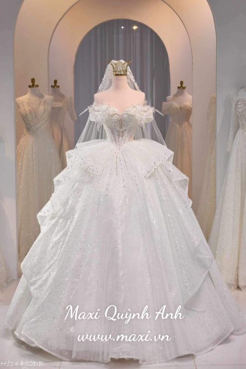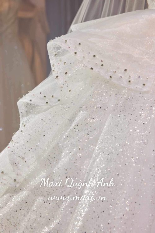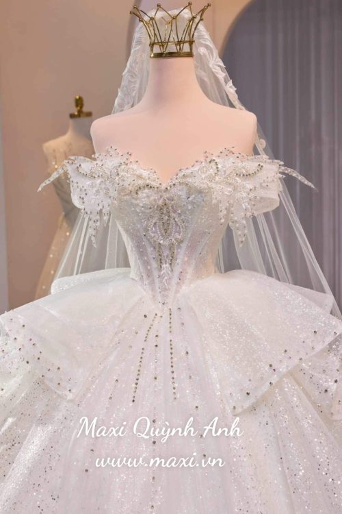 Váy Cưới Kim Sa Trễ Vai Bèo Tùng Cao Cấp