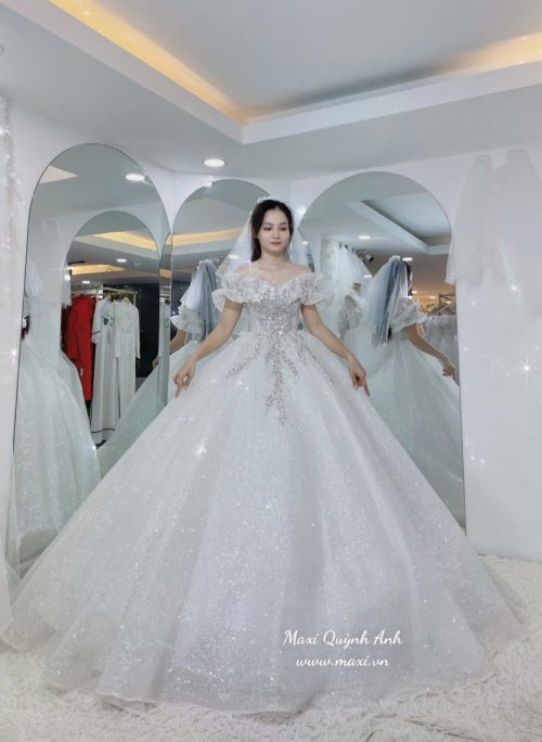 Đừng chỉ mơ ước, hãy HÓA THÂN! Chiếc váy “Dải Ngân Hà” đang chờ bạn tại Maxi Quỳnh Anh. Hãy đến và cảm nhận sự kỳ diệu của ánh sáng trên chất liệu kim tuyến!