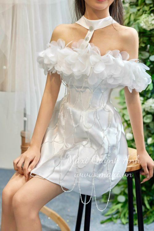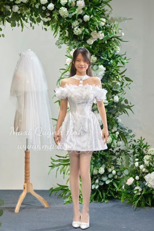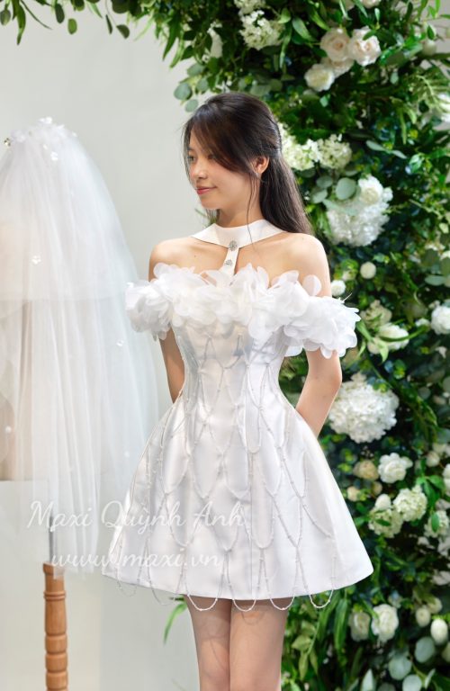 Váy Cưới Ngắn Phối Ngọc Trai Cao Cấp (2 Màu)