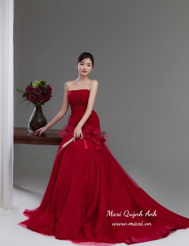 Váy Cưới Ôm Sát Cup Ngực Đỏ