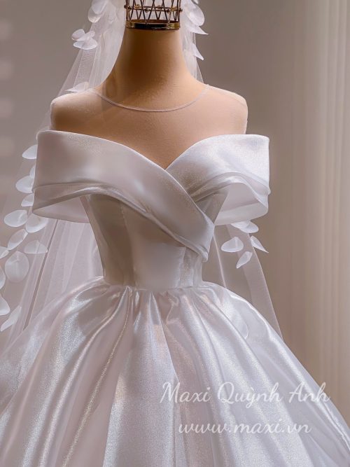 Váy Cưới Organze Trễ Vai Sang Trọng Basic