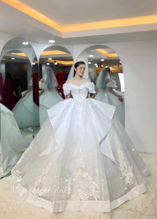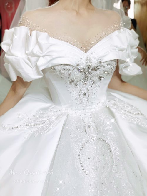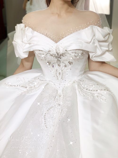 Váy Cưới Phi Trễ Vai Phồng Cao Cấp