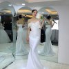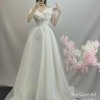 Chiếc váy cưới với form dáng xòe phồng công chúa, mang vẻ đẹp lộng lẫy và cổ điển cho cô dâu trong ngày trọng đại. Toàn bộ váy được may bằng chất liệu Organza cao cấp, tạo bề mặt bóng mượt và có độ đứng phom, rất sang trọng. Phần thân áo được xếp nếp ngang một cách khéo léo giúp tôn lên vòng eo thon gọn.