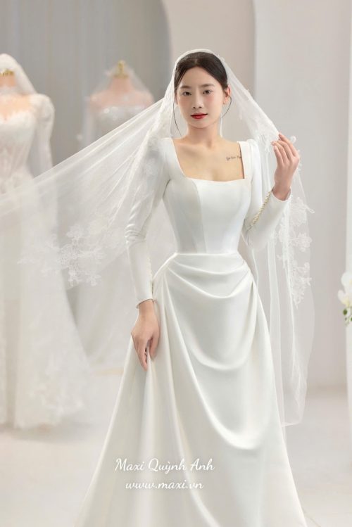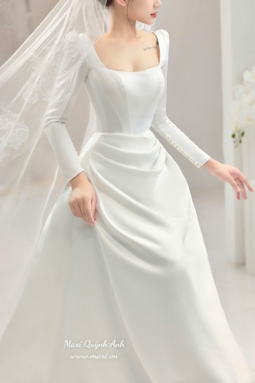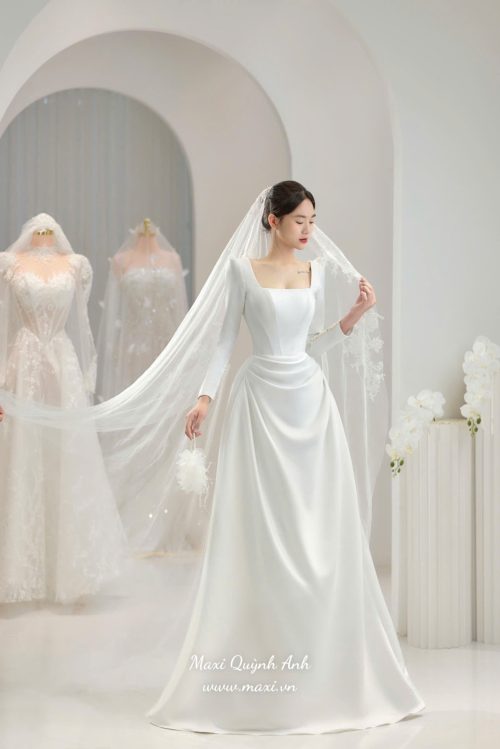 Chiếc váy này mang phong cách tối giản (Minimalist) pha lẫn cổ điển (Classic). Nó gợi nhớ đến vẻ đẹp của những chiếc váy cưới hoàng gia, nhưng được tinh giản hóa để phù hợp với xu hướng hiện đại. Đây là lựa chọn hoàn hảo cho những cô dâu yêu thích sự sang trọng, thanh lịch, không muốn quá cầu kỳ nhưng vẫn đủ sức tỏa sáng trong ngày trọng đại của mình.