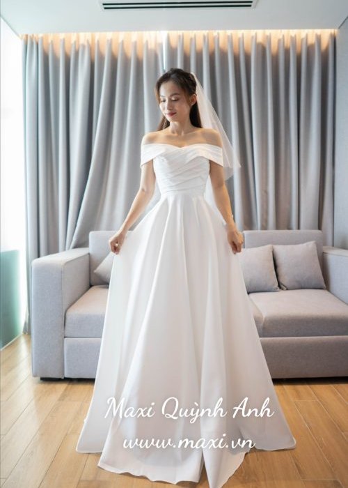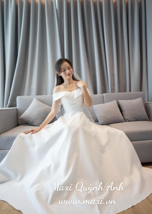 Váy Cưới Trắng Trễ Vai Sang Trọng