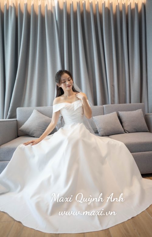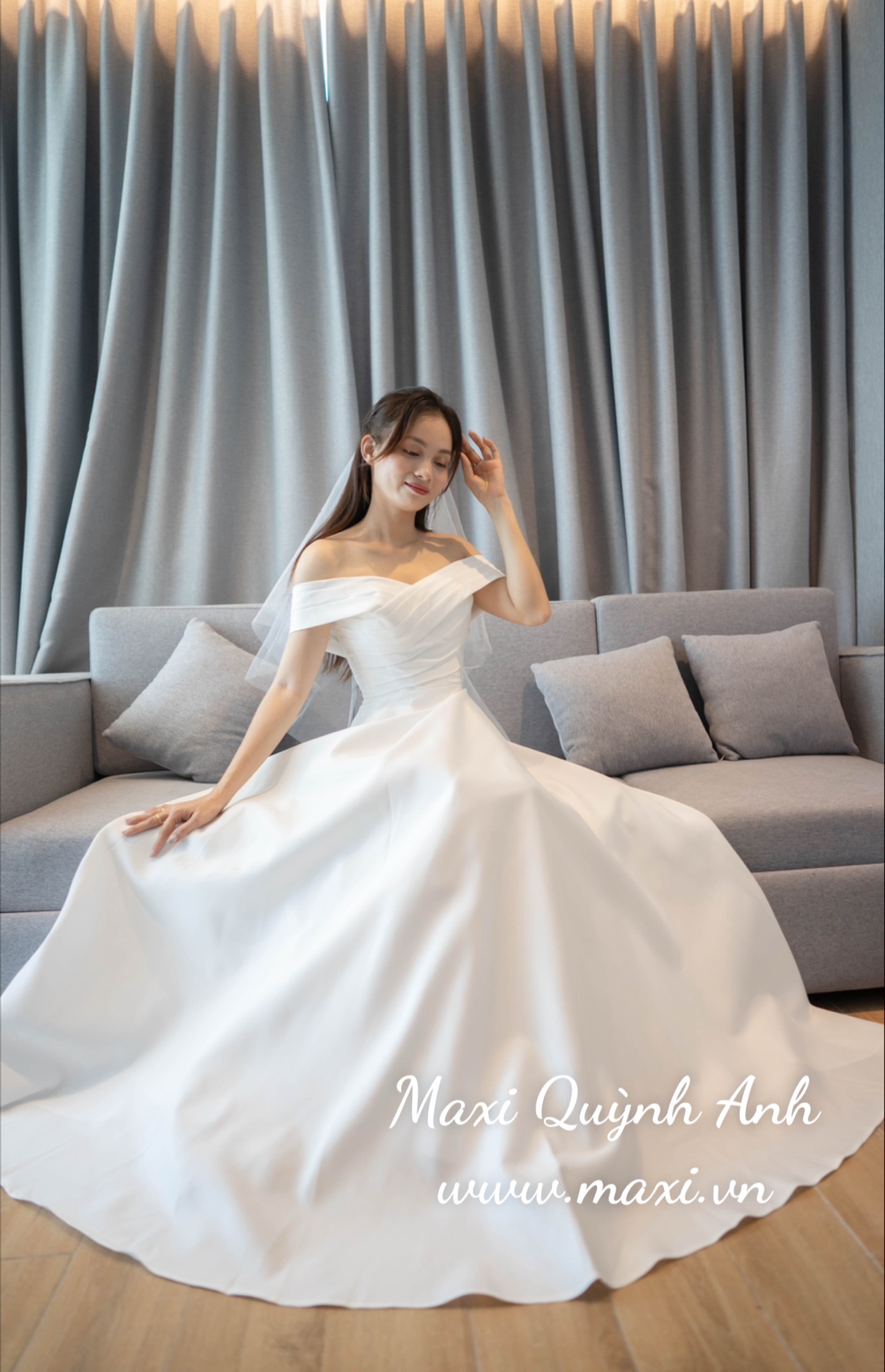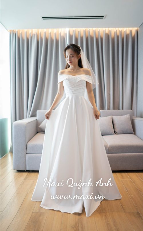 Váy Cưới Trắng Trễ Vai Sang Trọng