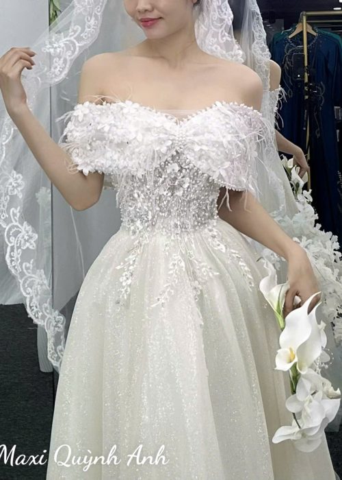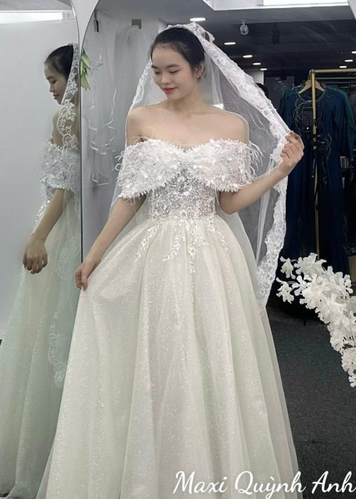 Váy Cưới Trễ Vai Công Chúa Bồng Bềnh