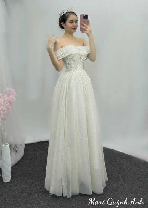 Váy Cưới Trễ Vai Dáng A 2025 – Thanh Lịch, Ngọt Ngào Cho Cô Dâu