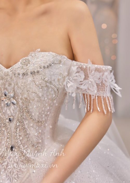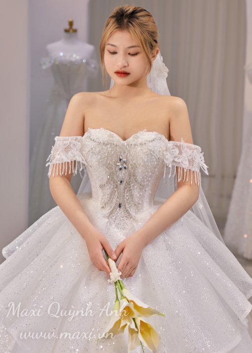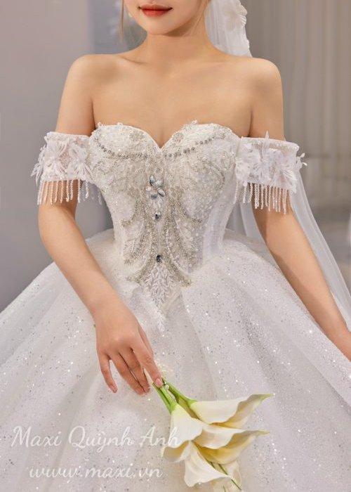 Váy Cưới Trễ Vai Đính Đá Cao Cấp