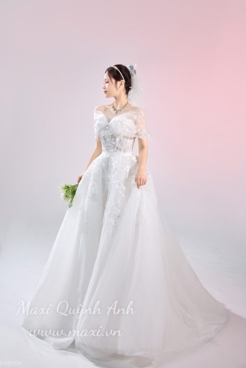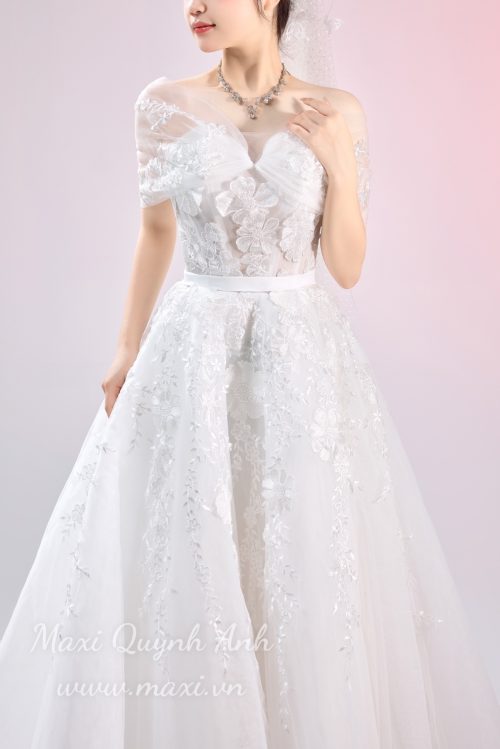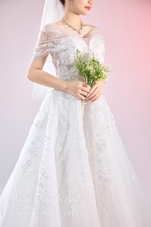 Váy Cưới Trễ Vai Đính Hoa Retro