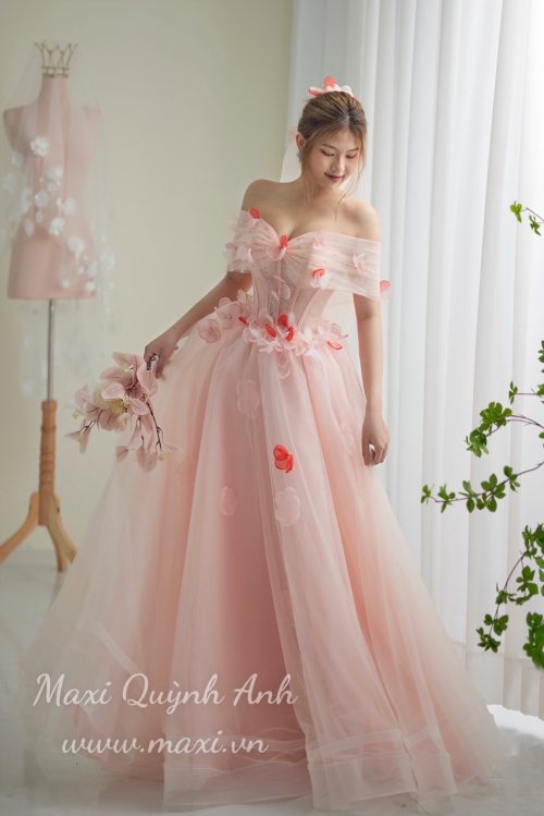 Nàng Công Chúa Hoa Anh Đào – Váy Cưới Hồng Pastel Lãng Mạn Tuyệt Đối!