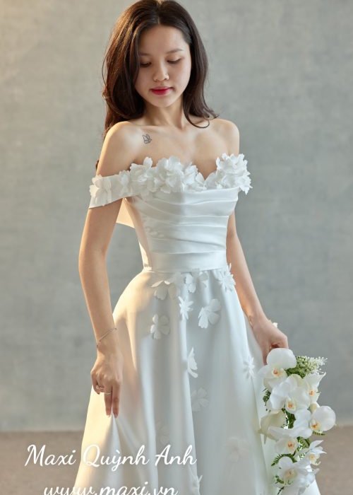 Váy Cưới Trễ Vai Hoa Nhí nhẹ Nhàng