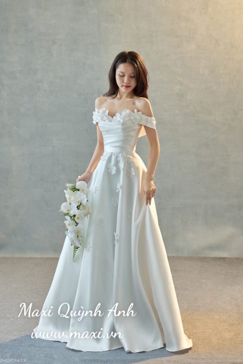 Váy Cưới Trễ Vai Hoa Nhí nhẹ Nhàng