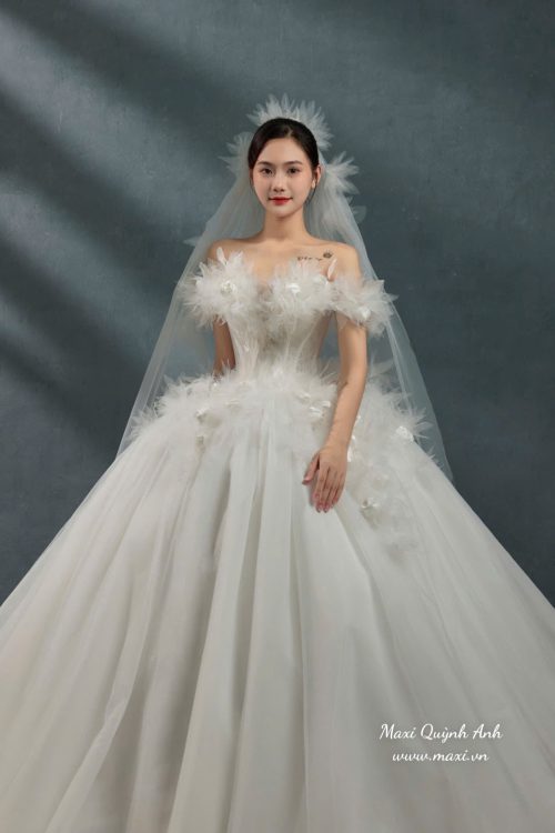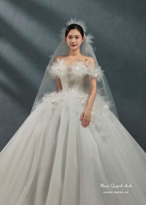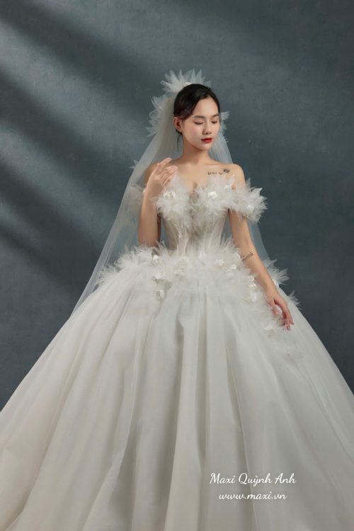 Váy Cưới Trễ Vai Hoa Voan Nhẹ Nhàng Tao Nhã