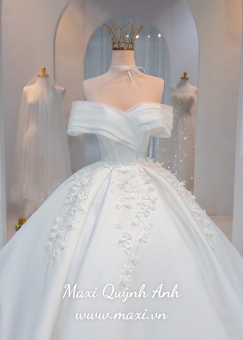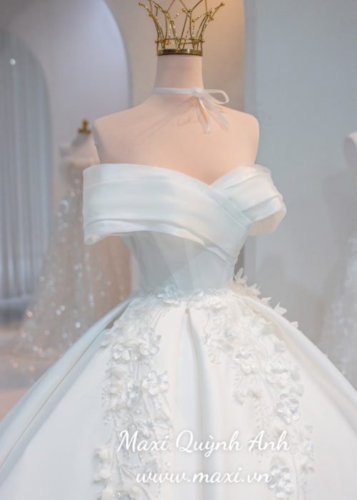 Váy Cưới Trễ Vai Kết Hoa Tùng Sang Trọng