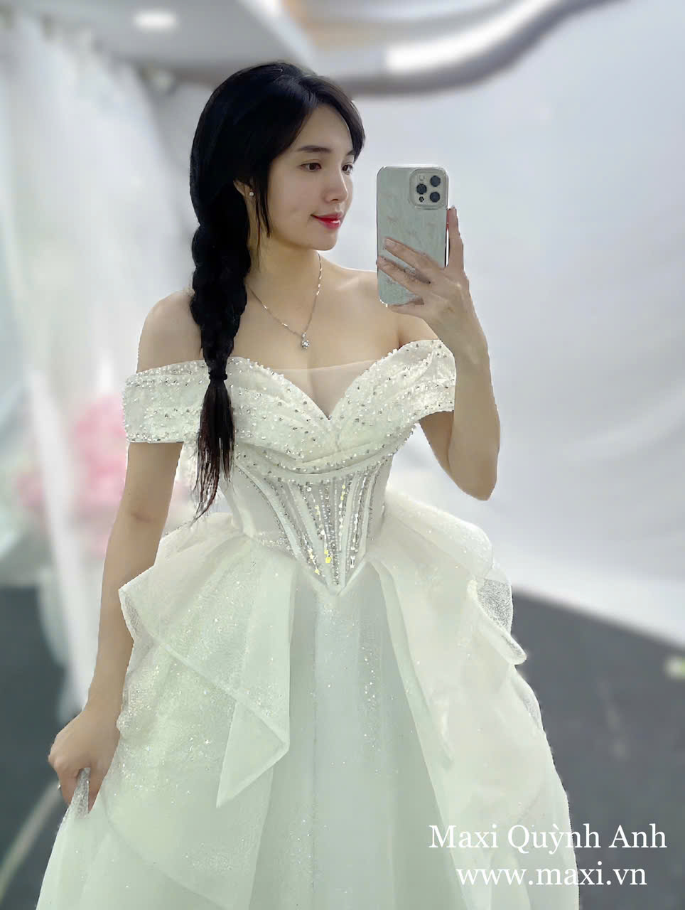 Đây không chỉ là một chiếc váy, mà là sự kết hợp hoàn hảo giữa hiện đại và lãng mạn, giúp nàng dâu tự tin tỏa sáng trong ngày trọng đại.