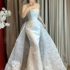 💍 Phần ngực trễ vai sang trọng, phối đính pha lê lấp lánh trải dài xuống thân váy như những tia sáng, giúp nàng rạng rỡ dưới mọi ánh nhìn.
