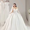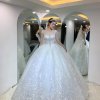 – Kiểu dáng: Váy cưới dáng chữ A bồng bềnh, xòe nhẹ từ eo, tạo nên vẻ thanh thoát và giúp che đi những khuyết điểm cơ thể. Thiết kế trễ vai quyến rũ, khoe trọn bờ vai thon và chiếc cổ cao thanh tú. Phần thân áo corset được dựng phom tỉ mỉ, giúp tôn vòng eo thon gọn.