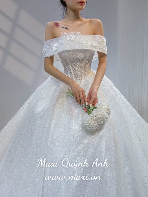 Váy Cưới Trễ Vai Ren Hoa Tao Nhã