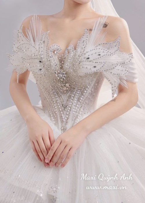 Váy Cưới Trễ Vai San Hô Cao Cấp