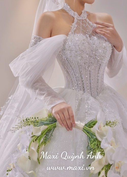 Váy Cưới Trễ Vai Tay Dài Cánh Tiên
