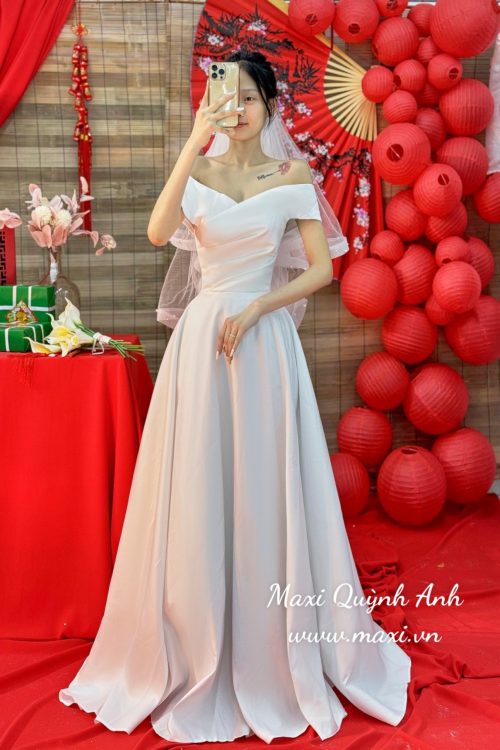 Váy Cưới Trễ Vai Thiết Kế Đơn Giản