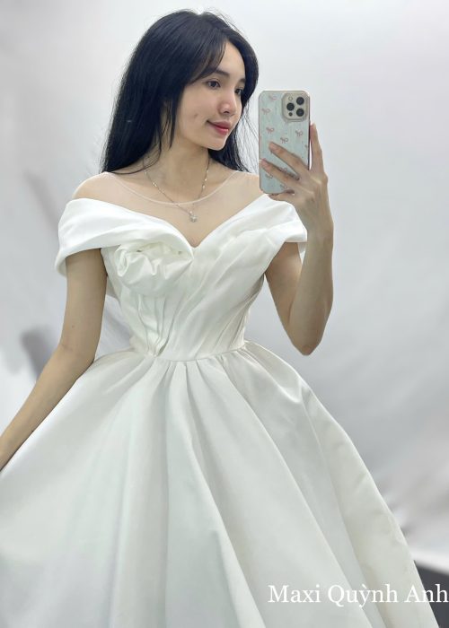 Váy Cưới Trễ Vai Tùng Xòe Cao Cấp