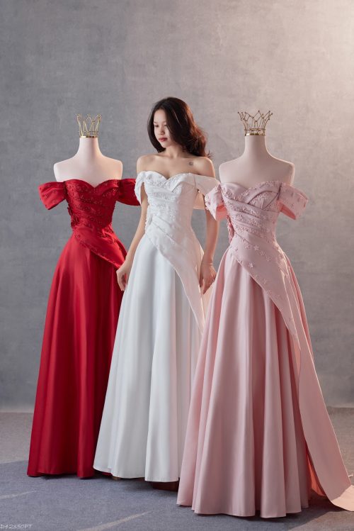Váy Cưới Trễ Vai Xếp Ly Hoa Nhí Nhẹ Nhàng