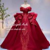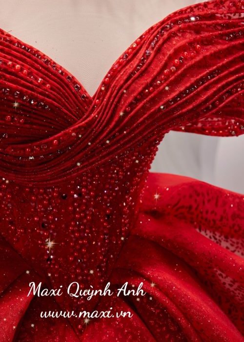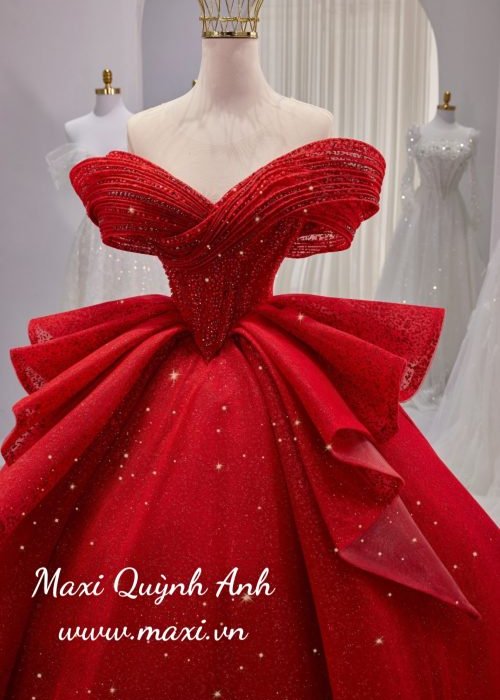 Váy Cưới Trễ Vai Xoắn Đỏ Cao Cấp