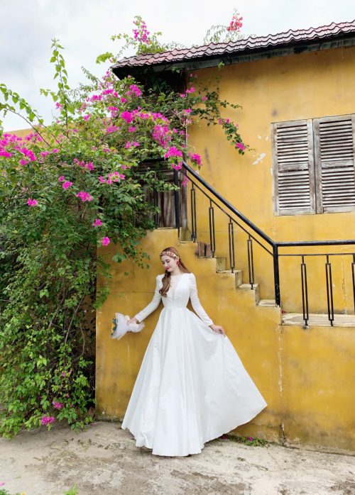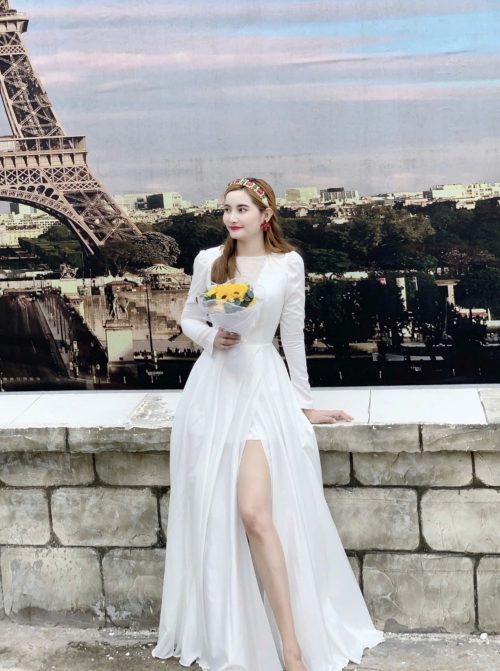 Váy Dạ Hội Cổ V Tay Dài Tao Nhã