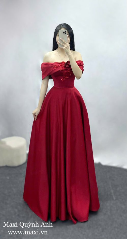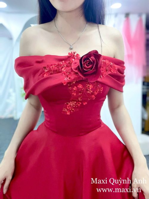 Váy Dạ Hội Đỏ Trễ Vai Hoa Ngực