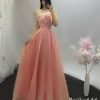 Váy Dạ Hội Hồng Nhấn Eo Xẻ Tà