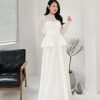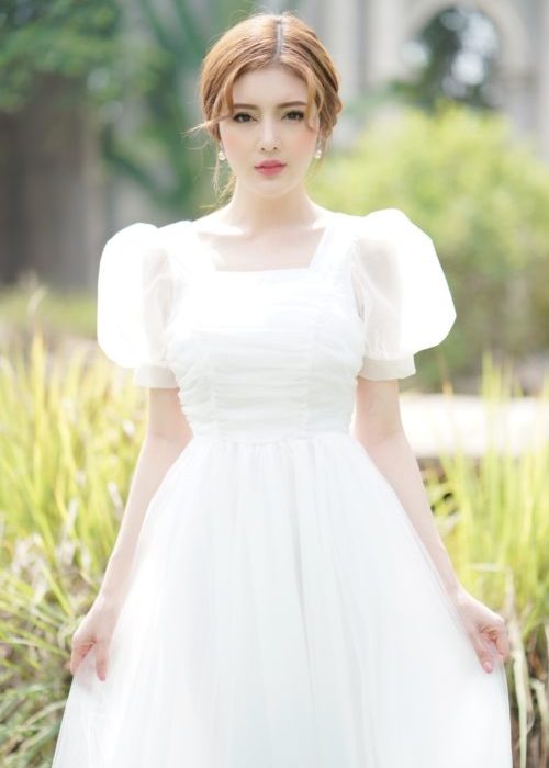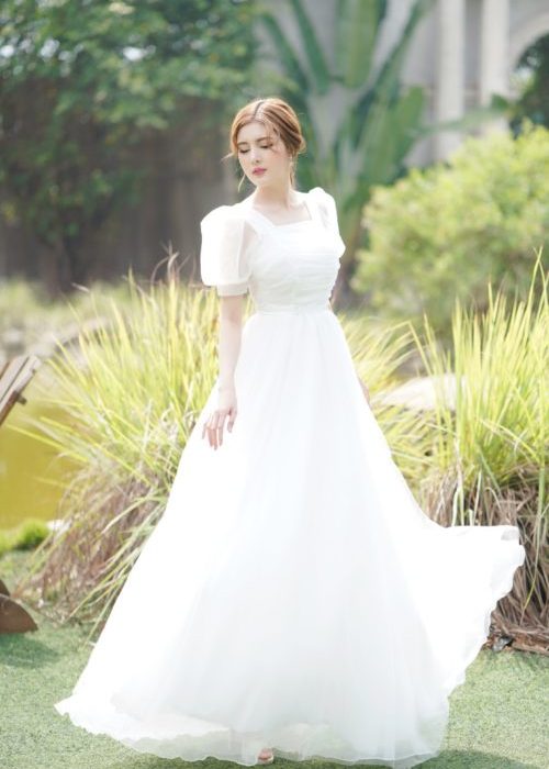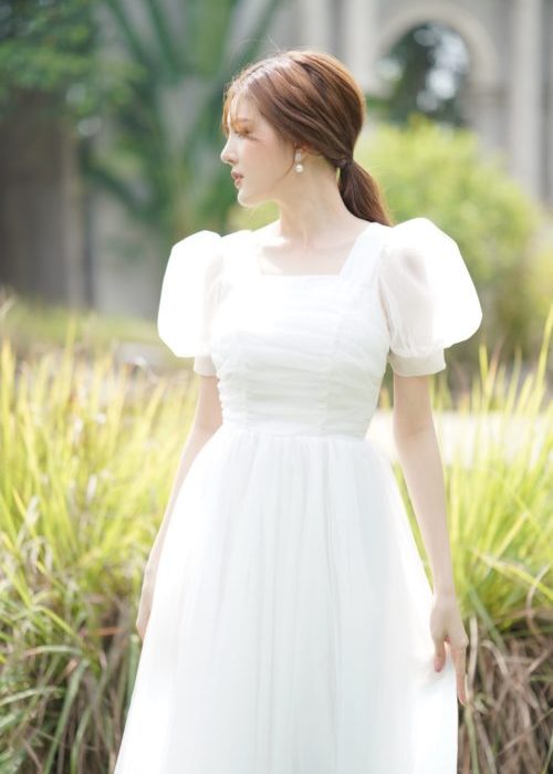 Váy Dạ Hội Tay Phồng Cổ Vuông Trắng