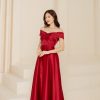 Váy Dạ Hội Trễ Vai Hoa Nhí (Đỏ, Trắng)