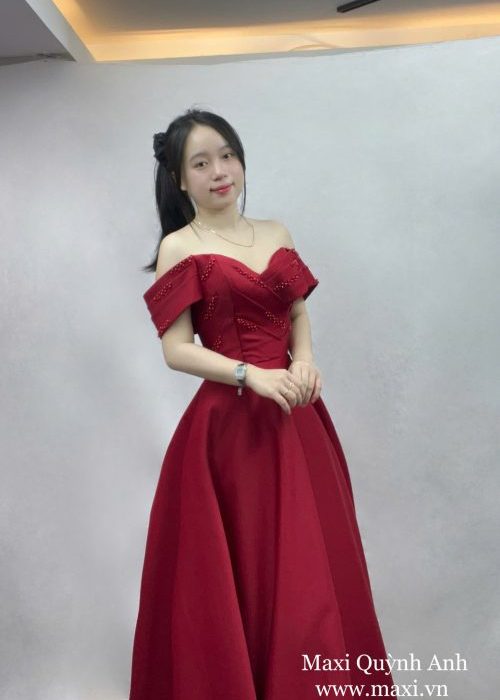 Váy dạ Hội Trễ Vai Ngọc Trai Sang Trọng