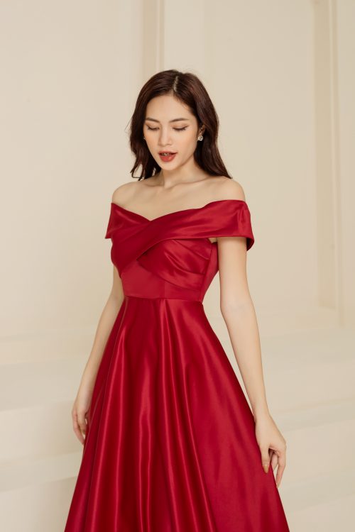 Váy Dạ Hội Trễ Vai Phong Cách Đơn Giản