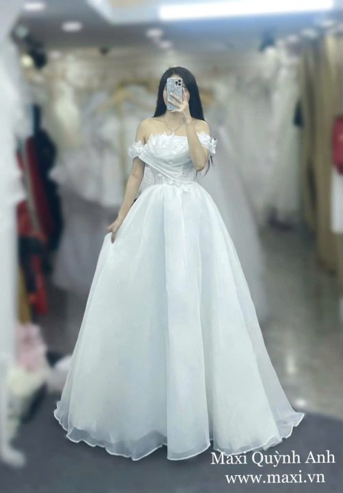 –Phụ kiện gợi ý: Voan dài trơn, vương miện nhỏ hoặc vòng cổ ngọc trai để tăng nét thanh lịch.