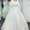 Phần thân trên được thiết kế cúp ngực đầy quyến rũ, kết hợp cùng dáng trễ vai làm bằng vải voan mỏng manh, tạo cảm giác nhẹ nhàng, bay bổng. Điểm nhấn là họa tiết ren và đá lấp lánh được đính kết cầu kỳ trên thân áo và eo, ôm sát cơ thể, tôn lên vóc dáng hoàn hảo. Chân váy xòe bồng bềnh, được tạo thành từ nhiều lớp vải voan phủ kim sa lấp lánh, khiến mỗi bước đi của bạn đều trở nên nổi bật và rực rỡ như những vì sao ✨.