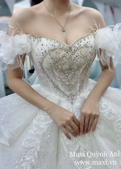 Với thiết kế tinh xảo và chất liệu cao cấp, chiếc váy này sẽ giúp bạn tự tin tỏa sáng. Hãy đến với Maxi Quỳnh Anh để trải nghiệm sự lộng lẫy này và tìm thấy chiếc váy cưới của cuộc đời mình.